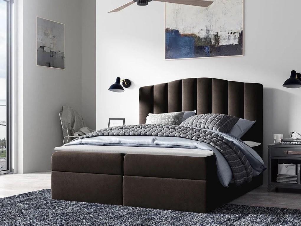 Kontinentálna posteľ Beatriz je elegantnou voľbou do štýlovej spálne. Vyznačuje sa vysokým čelom so zvislým prešívaním. Okrem dekoratívnej funkcie ponúka opierka hlavy pohodlnú oporu pri čítaní knihy alebo sledovaní televízie.Za zmienku stojí aj vrstvená konštrukcia postele, ktorá sa premieta do praktických aspektov, ako aj do pohodlia. V spodnej časti modelu Beatriz sa nachádza veľký obojstranný úložný priestor. Otváranie priestoru uľahčujú nainštalované pružiny.V strednej časti kontinentálnej postele sa nachádza bonellový matrac s vrstvou polyuretánovej peny. Úlohou matraca je postarať sa o stabilnú polohu tela počas spánku. Matrac je na pocit stredne tvrdý. Vonkajšiu časť postele naopak tvorí vrchný matrac. Je vyrobený zo zložiek s antibakteriálnymi a protiplesňovými vlastnosťami. Topper je možné prať pri teplote do 30˚C.Dostupné rozmery:120:hĺbka: 208 cm, šírka: 124 cm, výška: 125 cm,plocha na spanie: 120 x 200 cm,rozmery jednej kontajnerovej priečky (posteľ má dve): hĺbka: 197 cm, šírka: 57 cm, výška 25 cm,140:hĺbka: 208 cm, šírka: 144 cm, výška: 125 cm,plocha na spanie: 140 x 200 cm,rozmery jednej kontajnerovej priečky (posteľ má dve): hĺbka: 197 cm, šírka: 67 cm, výška 25 cm,160:hĺbka: 208 cm, šírka: 164 cm, výška: 125 cm,plocha na spanie: 160 x 200 cm,rozmery jednej kontajnerovej priečky (posteľ má dve): hĺbka: 197 cm, šírka: 77 cm, výška 25 cm,180:hĺbka: 208 cm, šírka: 184 cm, výška: 125 cm,plocha na spanie: 180 x 200 cm,rozmery jednej komory (posteľ má dve): hĺbka: 197 cm, šírka: 77 cm, výška 25 cmPrevedenie:box: lamino doska + 6 cm hrubé drevo,operadlo: 16 mm hrubá doska + T25 vysokoelastická pena,má dva zásobníky na lôžkoviny - lôžko štandardne s dvoma zásobníkmi na lôžkoviny, na oboch stranách lôžka, zdvíhanie oboch častí vďaka pružinám, vďaka čomu je obsluha veľmi jednoduchá a ľahká,hlavný matrac: bonellové pružiny + vysokoelastická pena T25,tvrdosť hlavného matraca (stredná vrstva lôžka): H3 - stredne tvrdý,v hornej časti - vrchná časť matraca (poťah Mandula):stredne tvrdý,hrúbka 2,5 cm,prešívaný poťah,topper vyrobený z najkvalitnejších hypoalergénnych materiálov:antibakteriálny a protiplesňový polyesterový úplet 200 gsm,20 mm PU pena: vyznačuje sa vysokým stupňom hustoty, primeranou tvrdosťou a elasticitou, nízkou náchylnosťou na deformáciu, vysokým komfortom používania,netkaná textília z polyesterových vlákien s gramážou 100 g/m2,35 gsm fleece vyrobený z vysoko kvalitnej netkanej textílie,82 gsm polyesterové mikrovlákno: priedušné, vysoká absorpcia vlhkosti, antialergické, bariéra proti prachu a roztočom,topper má 4 odolné upevňovacie gumy, ktoré zabraňujú pohybu matraca,lem: olemovaný páskou po obvode,obojstranné - obe strany sú úžitkovou plochou,matrac sa odporúča otočiť každé 2-3 mesiace,prateľný na 30˚Cnohy: plastové klzáky,posteľ nie je samostatne stojacaZáruka: 24 mesiacov