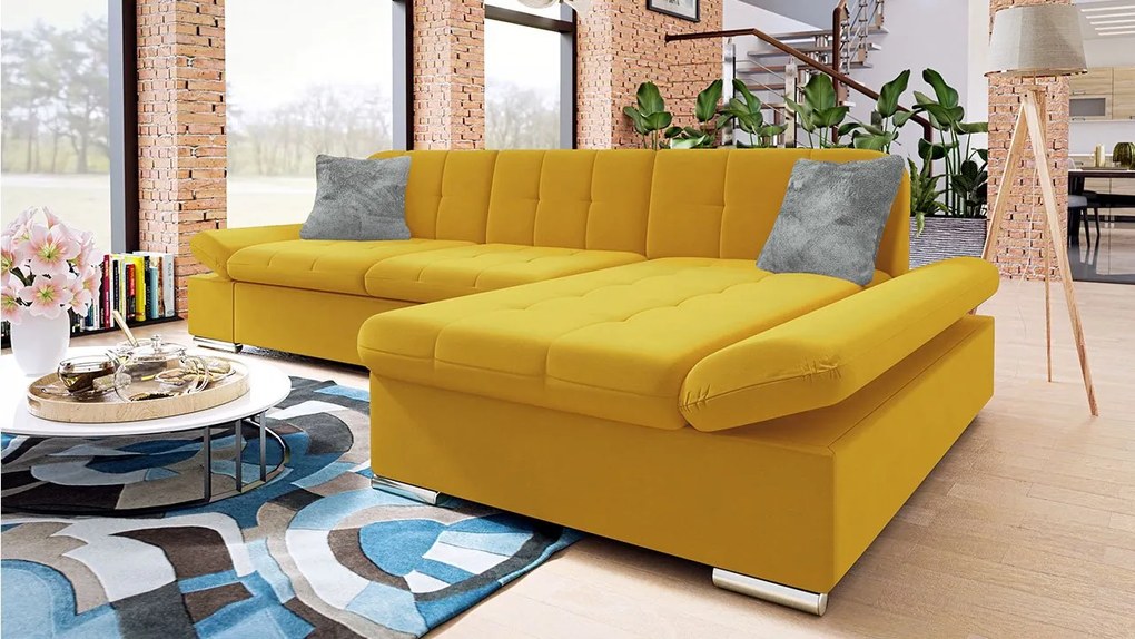 Rohová sedacia súprava Laviva poskytuje pohodlie aj počas mnohých hodín odpočinku. Je vybavená praktickými, pohyblivými lakťovými opierkami, ktoré sa dajú ľahko prispôsobiť polohe vášho tela. Laviva navyše patrí k voľne stojaciemu nábytku - chrbát je čalúnený látkou. Tento dizajn poskytuje väčšie možnosti usporiadania - sedačku môžete umiestniť aj do strednej časti miestnosti a opticky oddeliť jednotlivé zóny. Laviva má zabudovaný úložný priestor na posteľnú bielizeň, ktorý sa nachádza hneď pod pohodlným sedadlom. Okrem toho je vybavená praktickou funkciou spánku, ktorá je perfektným doplnkom na strávenie noci a dokonca aj spánok každý deň.Vďaka kombináciám vysokokvalitných látok Toptextil Premium a jedinečnému dizajnu je konečný výsledok úžasný! Široký výber farieb čalúnenia znamená, že ho určite prispôsobíte usporiadaniu svojej izby.Rozmery:šírka: 278 cmhĺbka: 161 cmvýška: 76 cmrozmer rozloženej plochy: 240x129 cmDostupné poťahy: vyberte z dostupných poťahov tuVýber strany: ľavá alebo praváVyrobené:drevený rám + drevotriesková doska,polyuretánová pena T2844vlnitá pružina,funkcia rozloženia,s úložným priestorom,nôžky plastové (chróm)opierka je vo forme vankúšov,vankúše na zips,v cene sú zahrnuté vankúše,nastaviteľná opierka,zadná časť sedačky je čalúnenáZáručná doba: 24 mesiacov