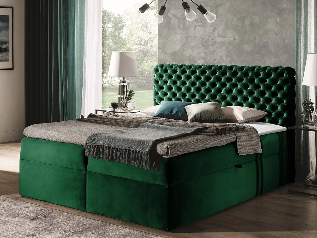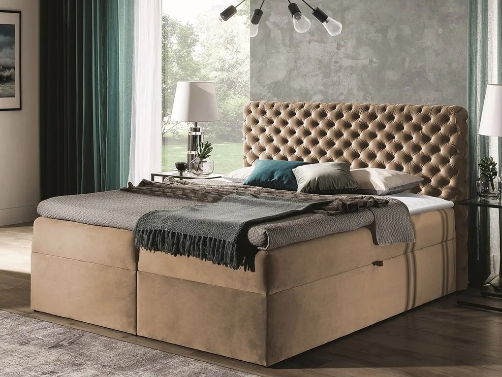 Kontinentálna posteľ Tigline je synonymom pohodlia, každodenného pohodlia a sofistikovaného štýlu. Čalúnenie, mäkké a príjemné na dotyk, je vyrobené z kvalitného zamatu. Zakrýva aj vysokú opierku hlavy postele. Charakteristickým prvkom modelu Tigline je hlboké prešívanie opierky hlavy.Vďaka niekoľkým vrstvám matracov príde spánok rýchlo a zaistí regeneráciu tela po náročnom dni. Hlavný matrac aj stredná vrstva postele majú strednú pevnosť. Vrchná vrstva je vyrobená z tej najvyššej kvality, ktorá má špeciálne fixačné gumy, ktoré zabraňujú pohybu matraca.Kontinentálna posteľ má až dve skrinky na posteľnú bielizeň. Optimálna hĺbka znamená, že do nich môžete uložiť oveľa viac ako len vankúše a periny.Dostupné rozmery:120: hĺbka: 213 cm, šírka: 126 cm, výška: 123 cm,plocha na spanie: 120 x 200 cm, rozmer jedného úložného priestoru (posteľ má dve): hĺbka: 198 cm, šírka: 56 cm, výška: 32 cm,140: hĺbka: 213 cm, šírka: 146 cm, výška: 123 cm,plocha na spanie: 140 x 200 cm, rozmer jedného úložného priestoru (posteľ má dve): hĺbka: 198 cm, šírka: 66 cm, výška: 32 cm,160: hĺbka: 213 cm, šírka: 166 cm, výška: 123 cm,plocha na spanie: 160 x 200 cm, rozmer jedného úložného priestoru (posteľ má dve): hĺbka: 198 cm, šírka: 76 cm, výška: 32 cm,180: hĺbka: 213 cm, šírka: 186 cm, výška: 123 cm,plocha na spanie: 180 x 200 cm, rozmer jedného úložného priestoru (posteľ má dve): hĺbka: 198 cm, šírka: 86 cm, výška: 32 cm,200: hĺbka: 213 cm, šírka: 206 cm, výška: 123 cm,plocha na spanie: 200 x 200 cm, rozmer jedného úložného priestoru (posteľ má dve): hĺbka: 198 cm, šírka: 96 cm, výška: 32 cmPrevedenie:drevotrieska 16 mm,posteľ nie je samostatne stojaca v priestore, operadlo je čalúnené pevnejším podhľadom z fibretexu,má dva boxy na úložný priestor - posteľ s dvoma boxami na úložný priestor štandardne na oboch stranách postele, zdvíhanie oboch častí vďaka pružinám, vďaka čomu je obsluha veľmi jednoduchá a ľahká,vstup: vreckové pružiny (matrac typu Pocket má 272 valcových pružín na 1 m2, čo umožňuje užívateľovi vychutnať si dobrú oporu tela - kostrový systém je dobre podopretý a prirodzené krivky tela sú zachované), vysoko elastická pena T30 (charakterizovaná mimoriadnou pružnosťou a priedušnosťou),hlavný matrac je stredne tvrdý,tvrdosť hlavného matraca (stredná vrstva postele): H3,nohy: plastové podložky,v hornej časti - pokrývka matraca (pokrývka Mandula):stredne tvrdé,hrúbka 2,5 cm,prešívaný poťah,topper vyrobený z najkvalitnejších hypoalergénnych materiálov:antibakteriálny a protiplesňový polyesterový úplet 200 g / m2,20 mm PU pena: vyznačuje sa vysokým stupňom hustoty, primeranou tvrdosťou a pružnosťou, nízkou náchylnosťou na deformácie, vysokým komfortom používania,netkaná textília z vysoko vláknitého polyesterového vlákna so 100 g / m2,rúno o hmotnosti 35 g / m2 vyrobené z vysoko kvalitnej netkanej textílie,82 g / m2 polyesterového mikrovlákna: priedušné, s vysokou absorpciou vlhkosti, antialergické, bariéra proti prachu a roztočom,topper má 4 odolné upevňovacie gumy, ktoré zabraňujú pohybu matraca,ozdoba: orezaná páskou po obvode,obojstranný - obe strany sú úžitková plocha,matrac sa odporúča otáčať každé 2-3 mesiace,možno prať na 30 ° CZáruka: 24 mesiacov