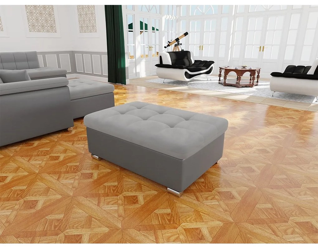 Taburetka na sedenie Tony veľká - keď usporiadame párty a zdá sa nám, že naša sedacia súprava bohužiaľ nie je dostatočne veľká pre všetkých našich pozvaných hostí, je to skvelá príležitosť kúpiť si taburetku! Ideálne sa hodí ako núdzové sedenie pre hostí, ktorí sa určite budú cítiť pohodlne pri sedení na tejto taburetke. Pri výrobe taburetky sa kladie dôraz na každý detail. Prešívané sedenie poskytuje pohodlie, keď sa rozhodneme si na chvíľu na ňu posadiť. Veľkou výhodou tejto taburetky na sedenie je možnosť výberu rôznych farebných prevedení, ktoré nakoniec potešia nielen našich hostí ale pridávajú kúzlo aj do nášho interiéru. Rozmery: dĺžka: 96 cm šírka: 70 cm výška 41 cm Prevedenie: drevený rám + drevotrieska vysokoelastická pena T 2844 neotvárateľný taburet Záručná doba: 24 mesiacov