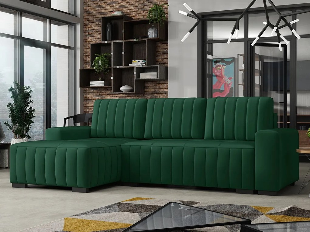 Tmavozelená rozkladacia rohová pohovka ZENA, obojstranná