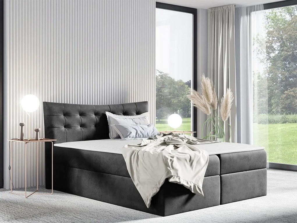 Čalúnená kontinentálna posteľ Rigmore poskytuje pohodlné prostredie na odpočinok pre osobu, ktorá na nej spí. Široký výber rozmerov nábytku umožňuje prispôsobiť sa potrebám párov, ako aj množstvu priestoru, ktorý je v spálni k dispozícii.Charakteristickým detailom postele je prešívaný podhlavník. Hlboko vsadené gombíky zdobia čelo postele a jeho mäkkosť poskytuje pohodlnú oporu chrbta pri relaxácii s knihou alebo filmom tesne pred spaním.Ďalšou prednosťou kontinentálnej postele je priestranný úložný priestor na posteľnú bielizeň. Úložné priestory, ktoré sú k dispozícii na pravej a ľavej strane nábytku, sú nepostrádateľné pri organizovaní posteľnej bielizne. Uložením vankúšov, perín a teplých prikrývok podporujú estetický vzhľad spálne.Dostupné rozmery:120:hĺbka: 208 cm, šírka: 124 cm, výška: 125 cm,plocha na spanie: 120 x 200 cm,rozmery jednej komory (posteľ má dve): hĺbka: 197 cm, šírka: 57 cm, výška 25 cm,140:hĺbka: 208 cm, šírka: 144 cm, výška: 125 cm,plocha na spanie: 140 x 200 cm,rozmery jednej komory (posteľ má dve): hĺbka: 197 cm, šírka: 67 cm, výška 25 cm,160:hĺbka: 208 cm, šírka: 164 cm, výška: 125 cm,plocha na spanie: 160 x 200 cm,rozmery jednej komory (posteľ má dve): hĺbka: 197 cm, šírka: 77 cm, výška 25 cm,180:hĺbka: 208 cm, šírka: 184 cm, výška: 125 cm,plocha na spanie: 180 x 200 cm,rozmery jednej komory (posteľ má dve): hĺbka: 197 cm, šírka: 87 cm, výška 25 cm200:hĺbka: 208 cm, šírka: 204 cm, výška: 125 cm,plocha na spanie: 180 x 200 cm,rozmery jednej komory (posteľ má dve): hĺbka: 197 cm, šírka: 97 cm, výška 25 cmPrevedenie:krabica: 16 mm laminovaná doska + 6 cm hrubé drevo,operadlo: 16 mm hrubá doska + T25 vysokoelastická pena,má dva zásobníky na lôžkoviny - lôžko štandardne s dvoma zásobníkmi na lôžkoviny, na oboch stranách lôžka, zdvíhanie oboch častí vďaka pružinám, vďaka čomu je obsluha veľmi jednoduchá a ľahká,hlavný matrac: bonellové pružiny + vysokoelastická pena T25,tvrdosť hlavného matraca (stredná vrstva lôžka): H3 - stredne tvrdý,v hornej časti - vrchná časť matraca (poťah Mandula):stredne tvrdý,hrúbka 2,5 cm,prešívaný poťah,topper vyrobený z najkvalitnejších hypoalergénnych materiálov:antibakteriálny a protiplesňový polyesterový úplet 200 gsm,20 mm PU pena: vyznačuje sa vysokým stupňom hustoty, primeranou tvrdosťou a elasticitou, nízkou náchylnosťou na deformáciu, vysokým komfortom používania,netkaná textília z polyesterových vlákien s gramážou 100 g/m2,35 gsm fleece vyrobený z vysoko kvalitnej netkanej textílie,82 gsm polyesterové mikrovlákno: priedušné, vysoká absorpcia vlhkosti, antialergické, bariéra proti prachu a roztočom,topper má 4 odolné upevňovacie gumy, ktoré zabraňujú pohybu matraca,lem: olemovaný páskou po obvode,obojstranné - obe strany sú úžitkovou plochou,matrac sa odporúča otočiť každé 2-3 mesiace,prateľný na 30˚Cnohy: plastové klzáky,posteľ nie je samostatne stojacaZáruka: 24 mesiacov