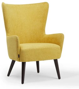 Čalúnené kreslo v sýtom odtieni žltej, ktoré nikdy nevyjde z módy, dokonale doplní akýkoľvek interiér. Klasický tvar, známy aj pod názvom ušiak, s hrubo vystuženým sedadlom, vysokým operadlom a klasickými zaoblenými bočnými ramenami sa hodí do spálne aj obývacej izby zariadenej v modernom alebo vintage štýle. Umiestnite do rohu alebo vedľa konferenčného stolíka a vytvorte si pohodlné a útulné miesto na relaxáciu.