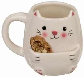 Roztomilý hrnček pre všetkých milovníkov mačičiek. Tento hrnček má na prednej strane vrecko, do ktorého vložíte sušienky, koláčiky alebo iné sladkosti. Hrnček je vhodný pre všetky studené aj teplé nápoje. Darčeková krabička.