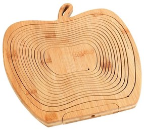 Krásny štýlový skladací košík na ovocie, zeleninu alebo pečivo. Očarí svojim dekoratívnym tvarom jablka a má všestranné využitie. Okrem dizajnovej misky, ktorú je možné jednoducho zložiť, ho využite ako podložku pod horúci hrniec alebo doštičku na krájanie. Šetrí miesto v kuchyni, môžete ho zavesiť alebo kamkoľvek postaviť. Otočná noha dodá košíku stabilitu.Vyrobený z kvalitného a odolného bambusu, ktorý je prirodzene antibakteriálny, odolný voči plesniam a baktériám. Rozmery (š x v x h): rozložený - 26,5 x 30 x 22,5 cm, zložený - 26,5 x 1,5 x 29,5 cm.