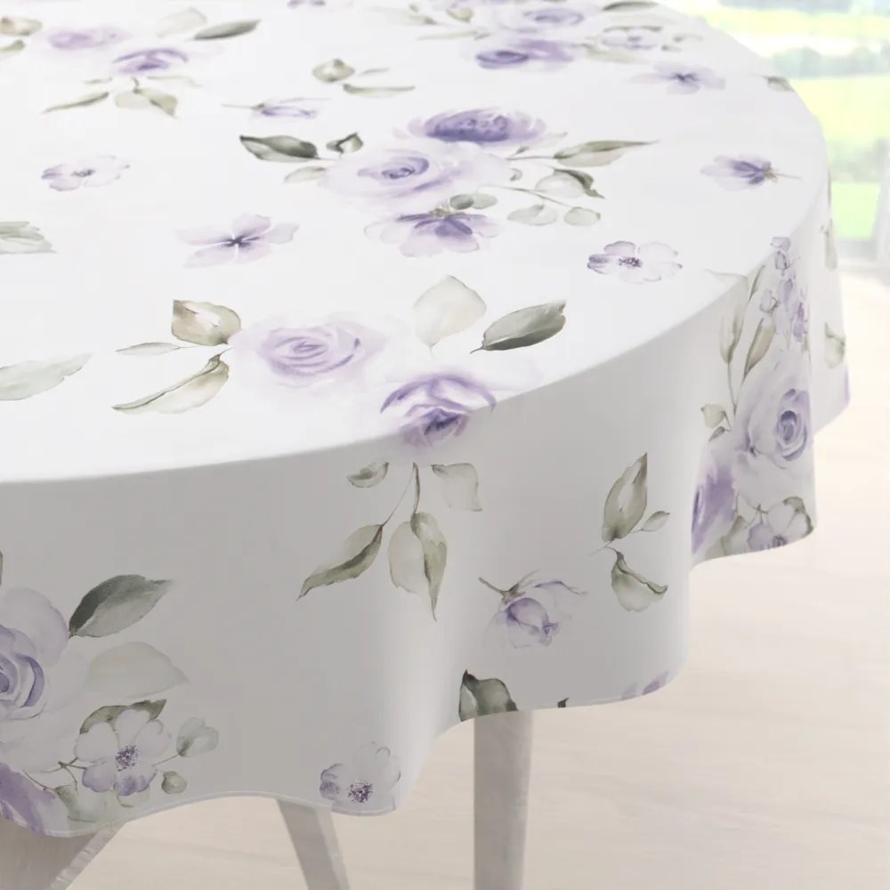 Biante Teflónový okrúhly obrus TF-024 Fialové ruže na bielom Ø 140 cm