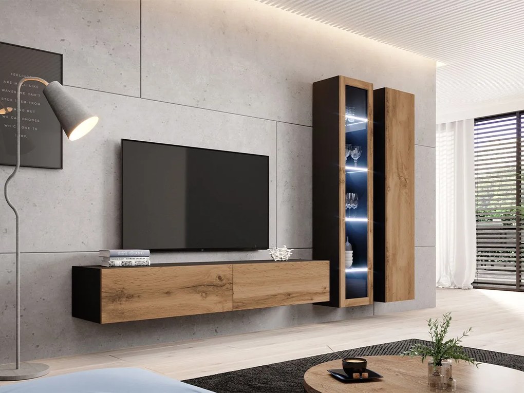 Obývacia stena Zigo III, Osvetlenie: osvetlenie LED RGB - farebné, Farby: čierny / wotan