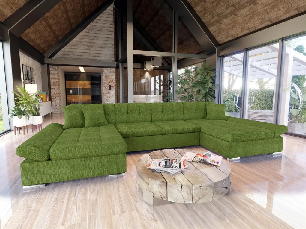 Kto by nesníval o tom, že si po náročnom dni bude môcť natiahnuť nohy na pohodlnej rohovej pohovke? Alebo aby si večer mohol sadnúť v širšej skupine priateľov bez obáv, že si navzájom narazia lakte?Rohová pohovka Agata s funkciou spania tieto očakávania spĺňa. Táto moderná rohová pohovka určite osloví milovníkov netradičnej elegancie v skutočne hollywoodskom štýle. Jej zaujímavá forma osvieži zariadenie interiéru a zabezpečí, aby si celá obývacia izba zachovala jednotný štýl. Rohová pohovka typu "U" zaručuje pocit pohodlia, komfortu a relaxu počas rodinného voľného času aj počas stretnutí s priateľmi. Takýto tvar jednoducho musí byť v interiéri vystavený!Priestranná rohová pohovka zaujme každého v dome. Bude tiež skvelým priestorom na detské hry - vaše deti si môžu postaviť domček z priložených vankúšov, zatiaľ čo vy si budete užívať nerušený oddych v druhej časti nábytku a zároveň dohliadať na ich bezpečnosť.Čalúnené operadlo je pevne pripevnené. Nastaviteľné podrúčky vám uľahčia nastavenie najpohodlnejšej opory. Konštrukcia sedadla bude mať zase pozitívny vplyv na vyrovnanie jednotlivých segmentov chrbtice, čím vám poskytne zdravé podmienky na relaxáciu. Po rozložení dosahuje rohová sedačka s funkciou spania nadpriemernú plochu na spanie, ktorá vám poskytne každodenný komfort a vašim hosťom pohodlný spánok. Vďaka dvom kontajnerom na lôžkoviny získate ďalší, diskrétny úložný priestor na sezónne oblečenie a zriedkavo používané doplnky.Mäkké tvary rohovej pohovky sa ponúkajú v pozoruhodných farbách. Široký výber farieb umožňuje ľahko zvýrazniť kvality vášho interiéru. Zadná časť čalúnená látkou vám navyše dáva možnosť umiestniť nábytok ľubovoľným spôsobom - aj v centrálnej časti obývačky bude vyzerať veľmi dobre. Chrómované predné nohy dodávajú nábytku jemný šarm a zároveň dodávajú zariadeniu jemný nádych modernosti.Vďaka použitiu vysokokvalitných komponentov sa rozkladacia rohová pohovka bude dlho tešiť svojej spoľahlivosti a odolnosti.Rozmery:šírka: 360 cm,hĺbka: 160 cm,výška: 75 cm,plocha na spanie: 360 x 130 cmRozmery úložného priestoru (dva kusy):dĺžka: 147 cm,šírka: 73 cm,výška: 23 cm,adĺžka: 147 cm,šírka: 73 cm,výška: 23 cmRohová strana: univerzálna (stranu si zákazník vyberie pri montáži)Prevedenie:konštrukcia sedadla: drevený rám + pružina + plsť + pena T2844 (10 cm) + čalúnická vatovitá tkanina,konštrukcia operadla: drevený rám + gumový pás + pena T2844 (5 cm) + čalúnická vatovitá tkanina,sedačka sa dá rozložiť, čo sa dá využiť na spánok,typ rohovej sedačky U,dva úložné priestory na posteľnú bielizeň,nastaviteľné podrúčky,sada vankúšov (3 malé) - na zips,trvalo čalúnené operadlo,chrómové predné nožičky, čierne plastové zadné nožičky,voľne stojaca sedačka v priestore (zadná strana potiahnutá látkou)Záruka: 24 mesiacov