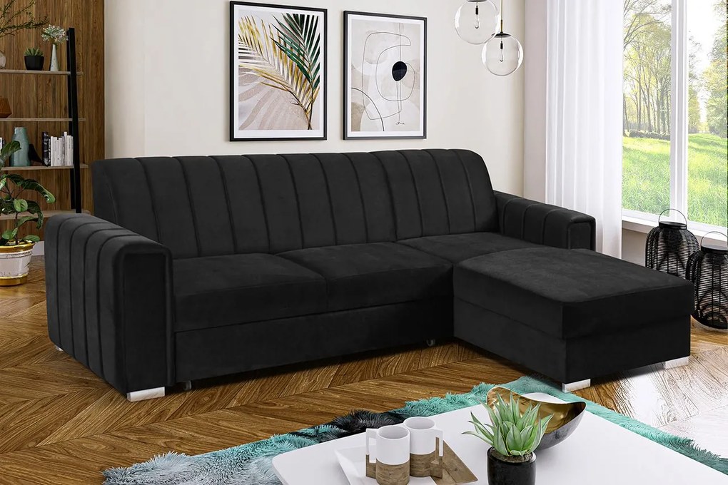 Rohová rozkladacia pohovka Ritobeno je nevyhnutnosťou vo vašej obývačke. Jednoduchá, no krásne spracovaná, jej prešívanie a jednoduchý tvar dodávajú nádych elegancie. Hodí sa do moderných aj tradičnejších interiérov.Táto rohová pohovka je ideálnym miestom na každodenný relax. Môže sa použiť aj ako posteľ a automatický rozkladací mechanizmus uľahčuje prípravu relaxačného priestoru. Pohodlné penové sedadlo a operadlo sú vyrobené z borovicového dreva, drevotriesky a drevovláknitej dosky a zaisťujú pohodlie. Rozkladacia rohová pohovka Ritobeno stojí na chrómovaných kovových nohách a obsahuje aj úložný priestor na posteľnú bielizeň. Je to voľne stojaci model, vďaka čomu sa ľahko integruje do akéhokoľvek interiéru.Rozmery:šírka: 260 cm,hĺbka: 183 cm,výška: 86 cm,povrch na spanie: 217 x 128 cm,rozmery úložného priestoru:dĺžka: 175 cm,šírka: 68 cm,výška: 21 cmRohová strana: ľavá alebo praváDizajn:rám: 16 mm drevovláknitá doska + 16 mm drevotriesková doska + 6 cm hrubé borovicové drevo,sedadlo: pena T30/38 + vlnitá pružina typu Boperadlo: pena T25/42 + elastický pás,rohová pohovka,automatický mechanizmus uľahčujúci rozkladanie,má funkciu spánku,nádoba na podstielku,chrómované kovové nohy,čalúnené operadlo napevno,rohová sedačka je voľne stojaca (zadná časť je čalúnená látkou)Možnosť nákupu produktov z aranžmánu:priemyselné regály Runoyapriemyselná lampa Pico black-gold III 8863Záruka: 24 mesiacov
