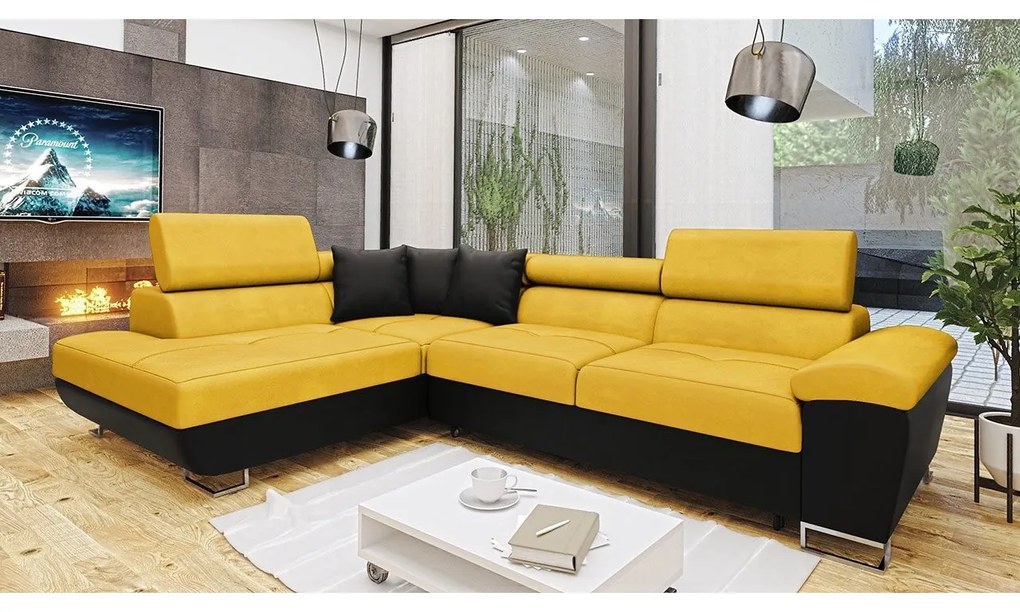 Rohová pohovka Alvin je luxus na dosah ruky, ktorý sa môže trvale usadiť vo vašej obývacej izbe.Štýlová rohová sedačkaZačnime s tým, čo vidíte na prvý pohľad, a to je dizajn. Rohová sedačka Alvin je umením moderného dizajnu. Ľahkosť získava vďaka chrómovaným nohám v striebornej farbe. Okrem toho si nemôžete nechať ujsť 20 najmódnejších farebných kombinácií, v ktorých je rohová sedačka k dispozícii. Moderný dizajn dopĺňa funkcia spánku, priestranný kontajner na posteľnú bielizeň a nastaviteľné opierky hlavy na uvoľnenie krku.Pohodlie a komfortAby produkt získal označenie luxusný, musí ukázať niečo viac než len skvelý vzhľad. Pre rohovú sedačku Alvin je to bezpochyby pohodlie, ktoré ponúka! Použitá bola pena novej generácie - T-2844. Vďaka tomu je sedadlo mäkké a super pohodlné! Pena sa dokonale prispôsobí užívateľovi, obklopuje ho jemnosťou a hebkosťou, čím zaisťuje úplnú regeneráciu a relaxáciu. Podobnú mäkkosť a pohodlie nezažijete pri žiadnej inej sedačke!Použité komponenty a doplnkové funkcieSedadlo je mäkké a pohodlné vďaka použitej pene, ktorá má hrúbku až 9 cm. Sedačka má však viac komponentov, ktoré majú vysokú kvalitu, vrátane vlnitej pružiny, ktorá zabraňuje deformácii a poskytuje podporu pene.Rozmery:šírka:: 270 cm,hĺbka: 202 cm,výška: 71 - 91 cm,plocha na spanie: 195 x 125 cmFarby: je možné zvoliť vyššieRohová strana: ľavá alebo praváPrevedenie:konštrukcia sedadla: drevený rám + vlnitá pružina + plsť + T-2844 pena s hrúbkou 9 cm + owata,* sedadlo je veľmi mäkké a pohodlné, vďaka čomu je odpočinok pohodlný na najvyššej úrovništruktúra operadla: drevený rám + drevovláknitá doska + T-2844 pena 7 cm hrubá + owata,funkcia rozkladu,má funkciu spánkuroh typu Lúložný prietor na posteľnú bielizeň,nastaviteľné opierky hlavy,vankúše v cene (3 malé) - na zips,čalúnené operadlo pevne pripevnené,plastové zadné nohy - chrómovaná kovová predná časť,voľne stojací nábytok (čalúnené látkou)Záruka: 24 mesiacov