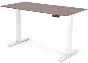 Výškovo nastaviteľný stôl, 180x180 cm, 3 motory, L/P, biela podnož, orech