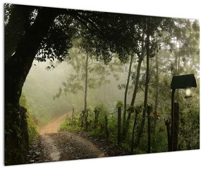 Obraz lesného jazera (s hodinami) (90x30 cm)