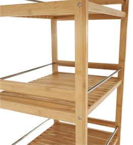 Do obývacej izby, jedálne, ale aj kuchyne. Servírovací vozík NASHY sa hodí skutočne všade. Disponuje úložným priestorom v podobe troch políc. Každá polica má navyše oceľové tyče proti vypadnutiu predmetov z vozíka. Vyrobený je z bambusu v prírodnom prevedení. Kolieska umožňujú ľahkú manipuláciu a presúvanie po priestore. Dve z nich sú s brzdou, ľahko tak vozík zaistíte proti pohybu.Stolík Nashy poslúži aj v záhrade či na terase, pri servírovaní jedla a rôznych chladených nápojov. Pomocník, ktorého si rozhodne zamilujete. materiál: bambus/oceľ farba: prírodná dodávané v demonte nosnosť 6 kg na jednu policuAko ošetrovať bambusový nábytok? Pred prvým použitím očistite nábytok vlhkou handričkou. Nepoužívajte agresívne čistiace prostriedky. Dbajte na to, aby nábytok neprišiel do kontaktu s vodou. Udržujte ho suchý. Nevystavujte slnečnému žiareniu, materiál môže časom zošednúť. Nevystavujte ani dažďu, predídete tak tvorbe plesní. Pre pravidelnú údržbu postačí opäť iba vlhká handrička.