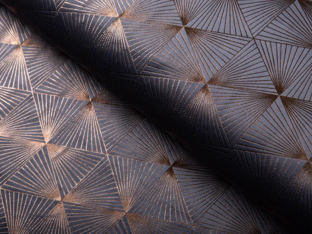 Biante Zamatový obdĺžnikový obrus Isabela IBL-003 Rose Gold trojuholníky na sivom 140x180 cm