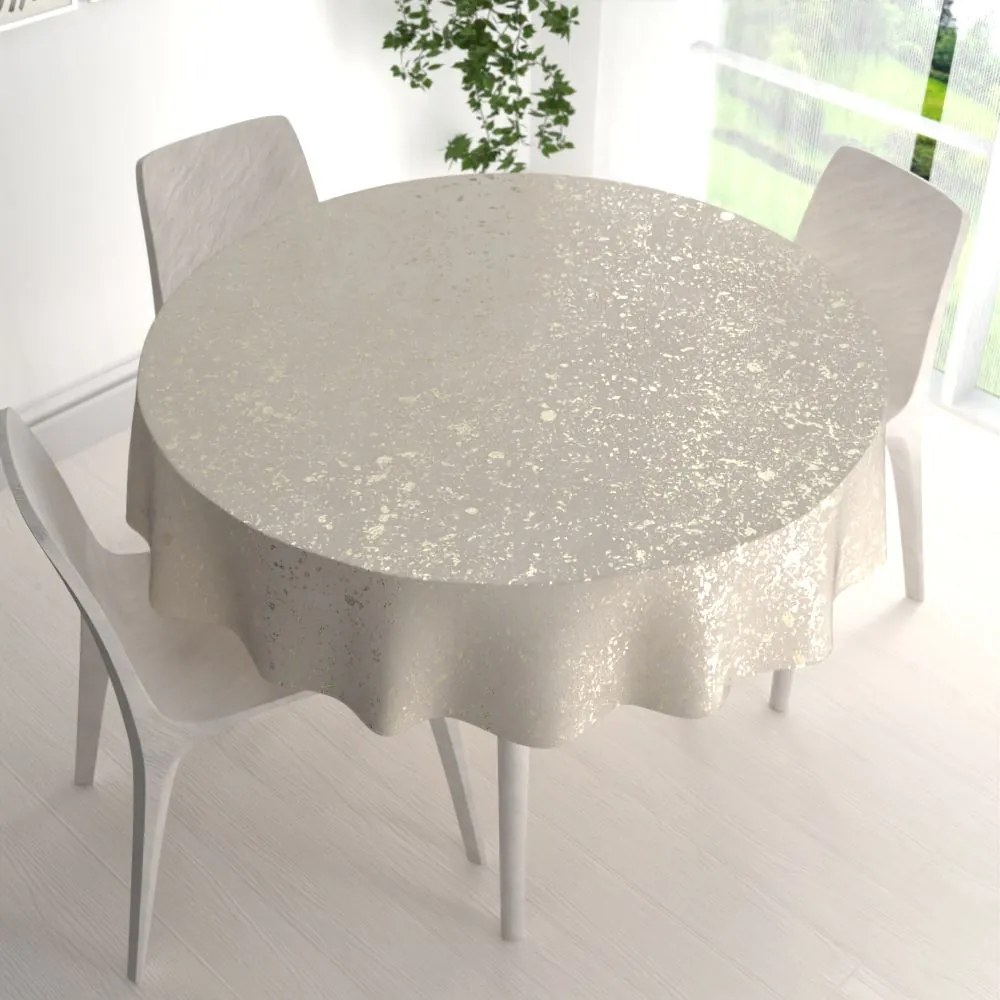 Zamatový okrúhly obrus na veľký jedálenský stôl, so vzorom designových zlatých škvŕn na krémovom podklade, vyrobený z kvalitnej látky Isabela s gramážou 285 g/m2. Látka Isabela je semišovo hebká jednostranná látka s luxusným vzhľadom, na dotyk veľmi príjemná. Kvalitné dekoračné obrusy Isabela sú praktickým doplnkom interiéru Vášho domu, bytu, chalupy a sú vhodné aj do hotelov a reštaurácií. Sú stálofarebné, nekrčivé a jednoduché na údržbu. Ako správne zvoliť rozmer obrusu? Uvedené rozmery sú rozmery obrusu, nie stola. Bežný doporučený presah obrusu je cca 20-30 cm na každú stranu stola, tzn. ak máte stôl s rozmerom (priemerom) napr. 60 cm, objednávajte obrus s rozmerom 100 až 120 cm, vždy však s prihliadnutím na vlastné individuálne požiadavky. Šijeme v našich krajčírskych dielňach v ČR, ponúkame aj rozmery na mieru.