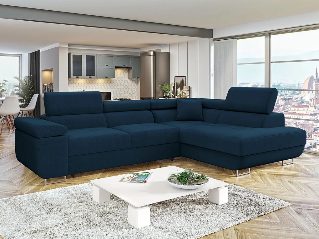 Tmavomodrá rozkladacia rohová pohovka ZENOVA 220x140 cm, obojstranná