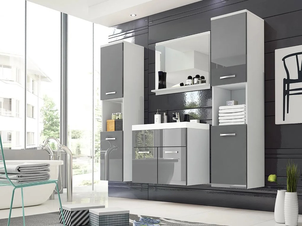 Kúpeľňový nábytok Floryna XL, Farby: biela / šedý lesk, Sifón: bez sifónu, Umývadlová batéria: nie