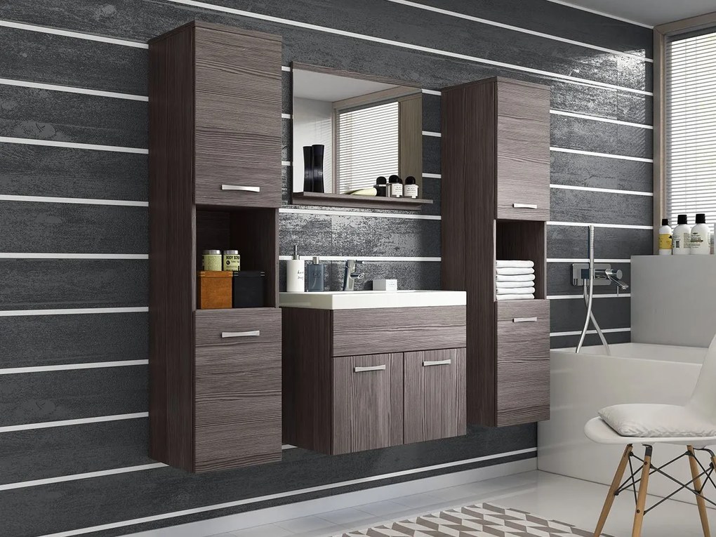 V kúpeľni nikdy nie je dosť priestranného úložného priestoru, preto je kúpeľňový nábytok Floryna XL vybavený množstvom priestranných skriniek a políc na kozmetiku. Súprava pozostáva zo závesných skriniek, zrkadla s poličkou a skrinky pod umývadlo a ponúka aj dostatok priestoru na uteráky, čistiace prostriedky a dekoratívne predmety.Súprava kúpeľňového nábytku Floryna je dostupná v širokej škále moderných odtieňov. Paleta farieb ponúka riešenia vhodné do svetlých i menších či tmavších kúpeľní.Rozmery prvkov kúpeľňovej zostavy: Závesná skrinka (x2): šírka: 30 cm, výška: 132 cm, hĺbka: 30 cm,Zrkadlo s poličkou: šírka: 60 cm, výška: 50 cm, hĺbka: 12 cm,Skrinka pod umývadlo: šírka: 60 cm, výška: 50 cm, hĺbka: 35 cm,Umývadlo: šírka: 60 cm, výška: 5 cm, hĺbka: 35 cmPrevedenie:korpus: 15 mm hrubá matná laminovaná doska,front: laminovaná doska hrubá 15 mm (mat) a doska POLYGLOSS hrubá 15 mm (lesk),ABS dyha (horný okraj + predné diely) + papierový lem (zvyšok tela),závesné pánty,kovové držadlá,sifón - za príplatok,obdĺžnikové dolomitové umývadlobatéria na umývadlo - za príplatokZáruka: 24 mesiacov