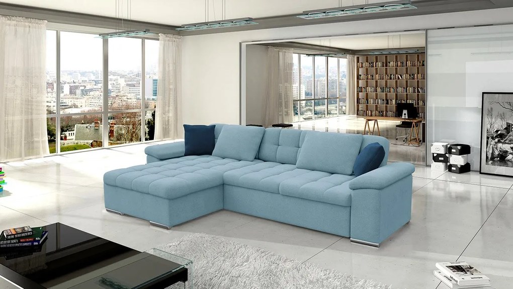 Tmavomodrá rozkladacia rohová pohovka ZENOVA 220x140 cm, obojstranná