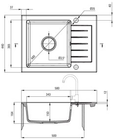 Gamma Modern 6550, 1-komorový granitový drez 650x500x210 mm s krátkym odkvapkávačom, šedá, GMA-ZLE000092