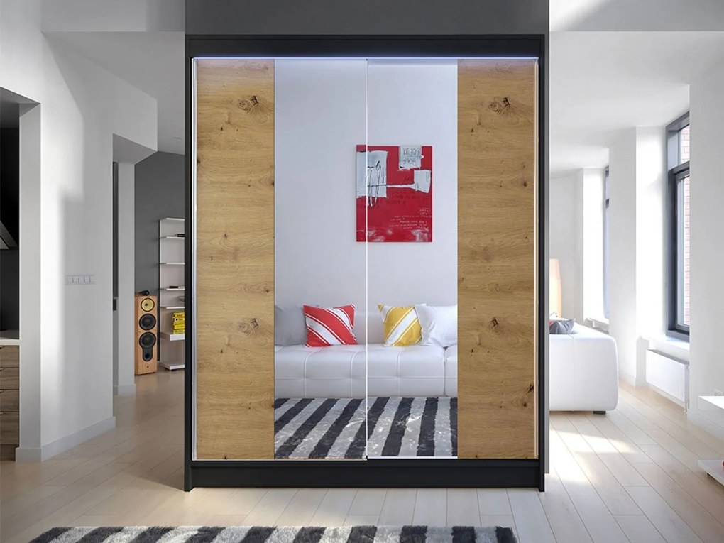 Vybraná varianta:Skriňa s posuvnými dverami Belgia II, Farby: čierny / dub artisan, Osvetlenie: bez osvetlenia