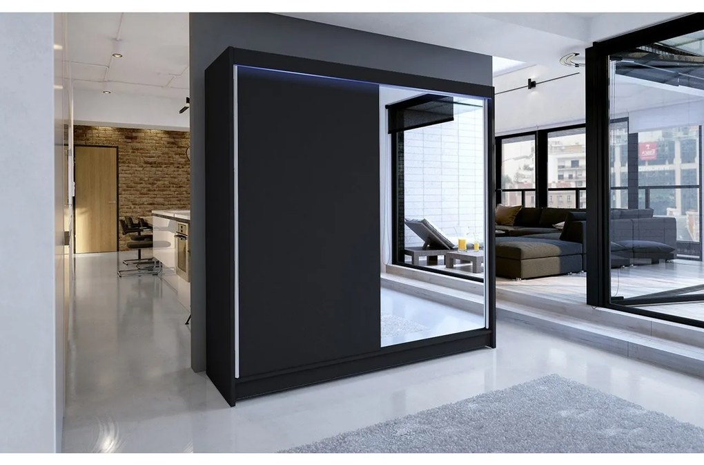 Šatníková skriňa s posuvnými dverami Bar I, Farby: čierna, Osvetlenie: bez osvetlenia
