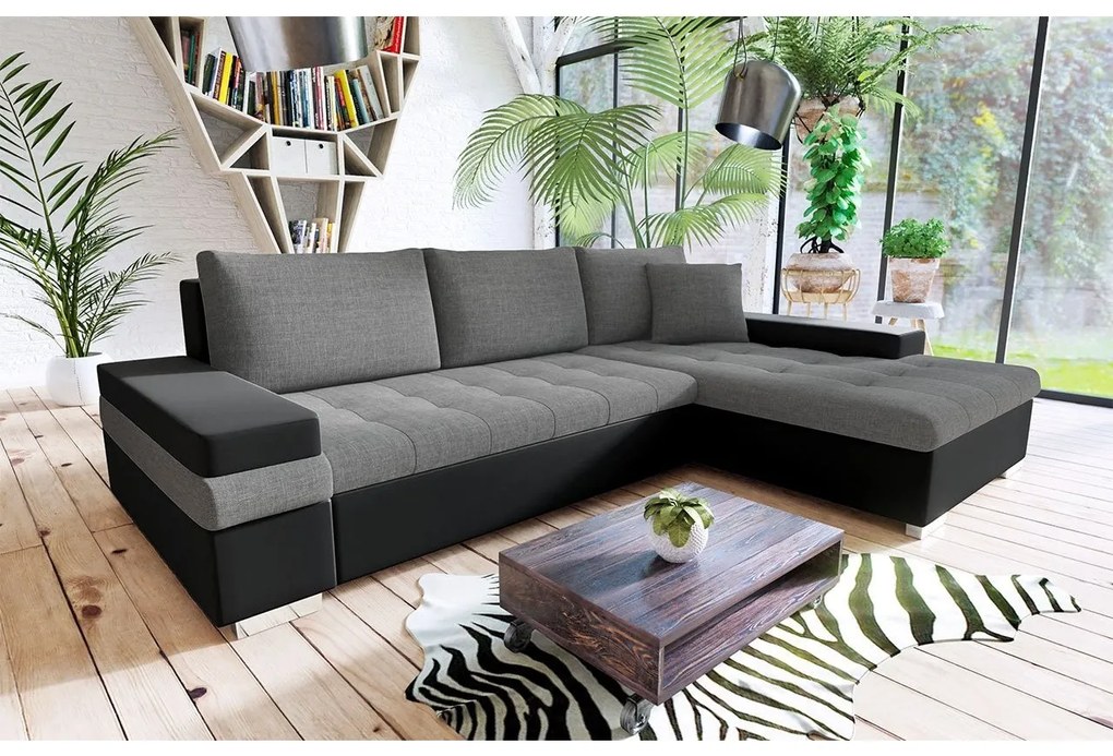 Rozkladacia rohová čalúnená sedacia súprava s úložným priestorom do tvaru L AVESTA pravá sivá