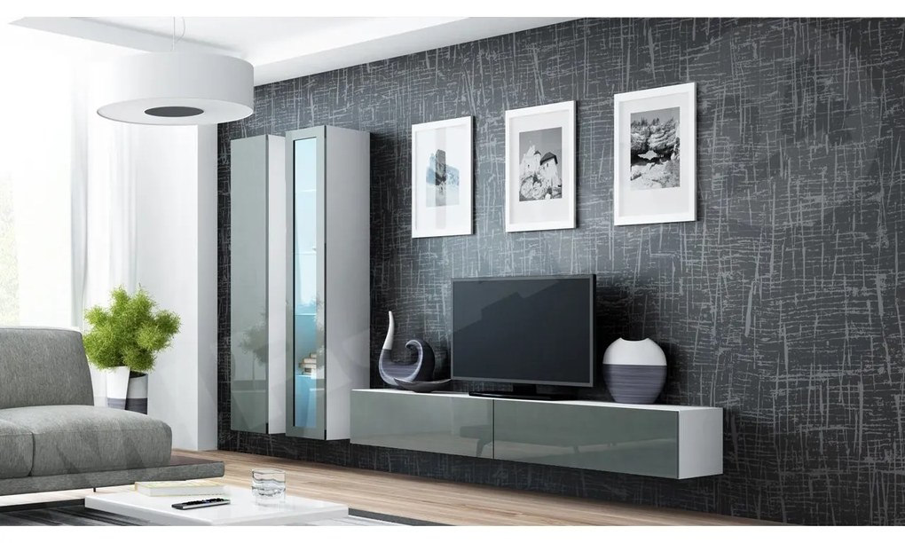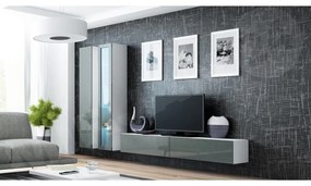 Obývacia stena Zigo III, Osvetlenie: osvetlenie LED biele, Farby: šedý / šedý lesk