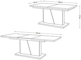 NOBLE NOIR je dokonalý stôl pre ľudí, ktorí majú radi moderné riešenie. Vďaka jednej vložke 58 cm je možné dosku stola zväčšiť až na 218 cm (pomocou vysoko kvalitných synchrónnych vodítok). Tento stôl je preto ideálny pre všetky druhy rodinných podujatí alebo stretnutí s priateľmi. Perfektný pre náročných ľudí, ktorí dbajú na detaily a hľadajú najvyššiu kvalitu – kvintesencia dobrého vkusu. Stôl je vyrobený z vysoko kvalitnej obojstranne laminovanej matnej drevotrieskovej dosky s hrúbkou 18 mm, zakončenej hranou ABS 1 mm. Doska a základňa stola majú dodatočné bočné zosilnenie až na 36 mm. DÔLEŽITÉ: Zväčšovacia vložka sa nachádza v špeciálnej "priehradke" pod doskou stola, vďaka čomu je pri rozkladaní stola vždy po ruke a nemusíte ju skladovať samostatne. V sade: čitateľný návod, krok za krokom, vďaka ktorému je montáž veľmi jednoduchá a zaberie cca. 45-60 min.
