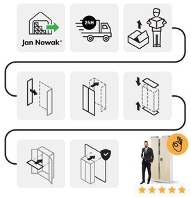 Skriňa JAN – biela /dub sonoma Kovová spisová skriňa model JAN biela/dub sonoma JAN NOWAK JAN – kovová skriňa so zámkom na kľúč Najbežnejšie použitie: kancelárska skriňa lekárska skriňa skriňa na náradie Spisová skriňa JAN – vlastnosti na 50 pákovych poradačov, níka a priestranná dvere s rozvorovým v troch smeroch uzáverom s cylindrickým zámkom (v komplete dva kľúče) odolný – solídny oceľový plech s hrúbkou 0,6 mm s povrchovou úpravou práškovou farbou nastavte si ju podľa vlastných potrieb – 4 nastaviteľné police po 25 mm, nosnosť police do 50 kg Zadná časť našej kovovej skrine sa skladá z dvoch častí Parametre výška 185 cm šírka 90 cm hĺbka 40 cm hmotnosť 40 kg farba biela RAL 9003 / dub sonoma Spisová skriňa JAN – prečo ju mať? Záruka kvality - Najlepšie materiály a žiadne kompromisy v spracovaní. Certifikát kvality – vyberajte si produkty iba so správnym certifikátom, univerzálna skriňa JAN má certifikát PZH (Štátny hygienický ústav) Súlad s GDPR 2018 – dôležité dokumenty si skladujte v skrini, ktorá spĺňa tieto požiadavky Skriňa je odosielaná v demontovanom stave, takže vyžaduje vlastnú montáž. Kolekcia JAN NOWAK Kancelárský nábytok JAN NOWAK – kvalita a skúsenosť jedného z najväčších dodávateľov kovového nábytku v Európe. *skriňa je predávaná bez predmetov na fotke