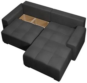 Rozkladacia rohová čalúnená sedacia súprava s úložným priestorom do tvaru L AVESTA pravá sivá