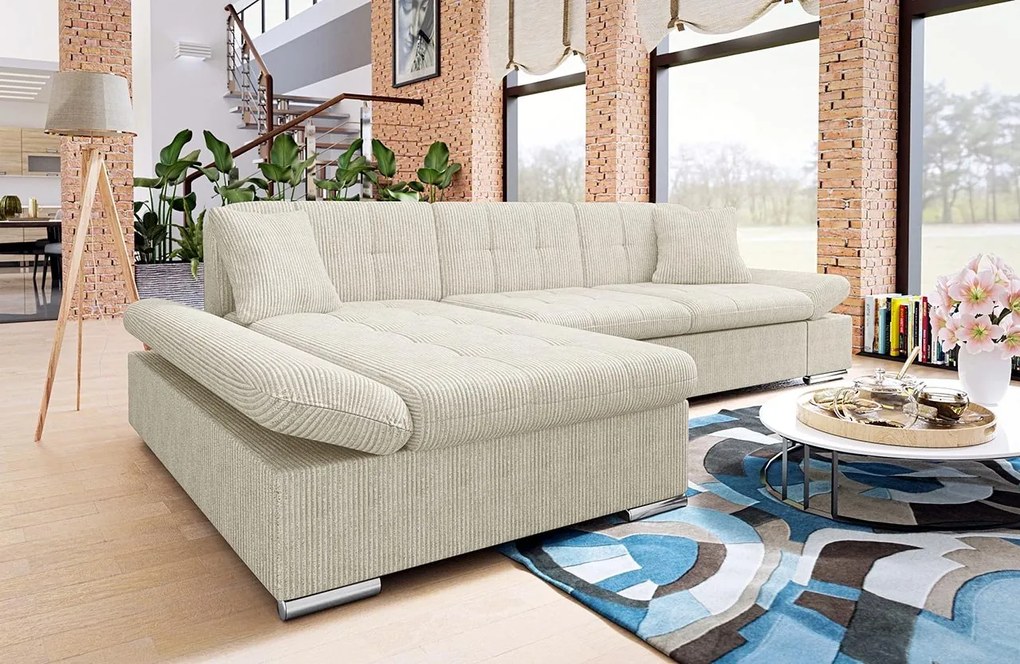 Pohodlie, krásny vzhľad a funkčnosť, to je to, čo charakterizuje model Laviva s úložným priestorom. Rebrovaná tkanina zdôrazňuje jej jedinečný charakter. Bude fungovať v akomkoľvek usporiadaní, poteší oči a poskytne pohodlie pri používaní.Ide o mimoriadne praktický model. Okrem pohodlného sedenia získate aj spaciu plochu 240 x 129 cm. Okrem toho má sedačka aj nastaviteľnú lakťovú opierku a podušky na zips. Tento variant je voľne stojaci typ, ktorý dáva veľa kombinácií usporiadania. Jeho tvar pripomína písmeno „L“.Rozmery:dĺžka: 278 cm,šírka: 161 cm,výška: 76 cm,plocha na spanie: 240 x 129 cm,rozmery úložného priestoru:dĺžka: 147 cm,šírka: 73 cm,výška: 23 cmRohová strana: ľavá alebo praváprevedenie:drevený rám + drevotrieska,polyuretánová pena + vlnová pružina,rozkladací modelfunkcia spánku,úložná priestorvankúše v cene,vankúše na zips,chrómované plastové nohy,voľne stojací model (zadná strana potiahnutá látkou),nastavenie lakťovej opierkyZáruka: 24 mesiacov