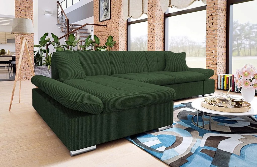 Tmavozelená rozkladacia rohová pohovka ZENA, obojstranná