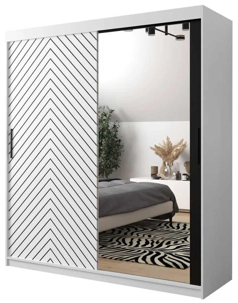 Moderná šatníková skriňa so zrkadlom Ratintu 2 180 cm, zásuvka: nie, Farby: biela / biela + čierny mat