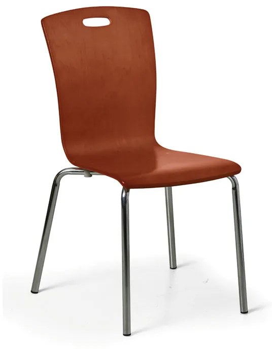 · jednoduché stolička s dreveným škrupinovým sedadlom · podnože sú vyrobené z oceľových trubiek s priemerom 22 mm, konštrukcia je pochrómovaná · nohy stoličky sú vybavené plastovými koncovkami · nosnosť stoličky je 120 kg