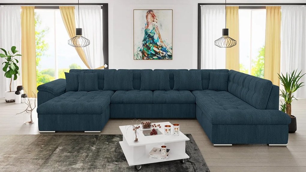 Vo svojom byte máte značný priestor, takže veľká rohová sedačka do obývačky Tony je pre vás to pravé. Ponúka veľký priestor na spanie aj pohodlný odpočinok počas dňa. Je vyrobený z výnimočnej látky, ktorá obohatí váš priestor a urobí ho skutočne jedinečným.Rohová sedacia súprava sa vyznačuje solídnym spracovaním. Kombinácia krásneho dizajnu a funkčnosti. Je to rozkladací model vybavený vankúšmi na zips. Voľne stojaci variant ponúka široké možnosti usporiadania. Jeho tvar pripomína písmeno "U". Vďaka bohatej farebnej škále sa hodí takmer ku každému štýlu.Rozmery:šírka: 348 cm,hĺbka: 205 cm,výška: 76 cm,povrch na spanie: 290 x 125 cmRohová strana: ľavá alebo praváPrevedenie:drevený rám + drevotrieska,vysoko elastická penavlnitá pružina,rozkladacia rohová pohovka,funkcia spánku,bez nádoby na podstielku,vankúše sú súčasťou balenia,vankúše na zips,voľne stojaca rohová pohovka (zadná časť čalúnená látkou)Záruka: 24 mesiacov