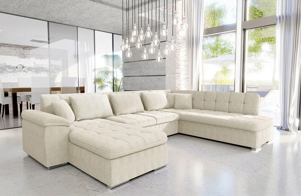 Vo svojom byte máte značný priestor, takže veľká rohová sedačka do obývačky Tony je pre vás to pravé. Ponúka veľký priestor na spanie aj pohodlný odpočinok počas dňa. Je vyrobený z výnimočnej látky, ktorá obohatí váš priestor a urobí ho skutočne jedinečným.Rohová sedacia súprava sa vyznačuje solídnym spracovaním. Kombinácia krásneho dizajnu a funkčnosti. Je to rozkladací model vybavený vankúšmi na zips. Voľne stojaci variant ponúka široké možnosti usporiadania. Jeho tvar pripomína písmeno "U". Vďaka bohatej farebnej škále sa hodí takmer ku každému štýlu.Rozmery:šírka: 348 cm,hĺbka: 205 cm,výška: 76 cm,povrch na spanie: 290 x 125 cmRohová strana: ľavá alebo praváPrevedenie:drevený rám + drevotrieska,vysoko elastická penavlnitá pružina,rozkladacia rohová pohovka,funkcia spánku,bez nádoby na podstielku,vankúše sú súčasťou balenia,vankúše na zips,voľne stojaca rohová pohovka (zadná časť čalúnená látkou)Záruka: 24 mesiacov
