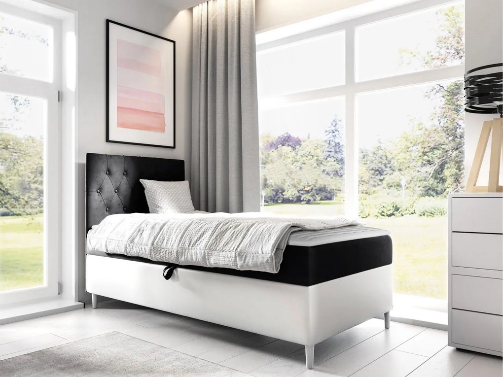 Kontinentálna posteľ Junior Gerdise 1, Strana: pravá, Rozmer postele: 90x200, Dostupné poťahy: ekokoža Soft 017 (biela) + Fresh 09