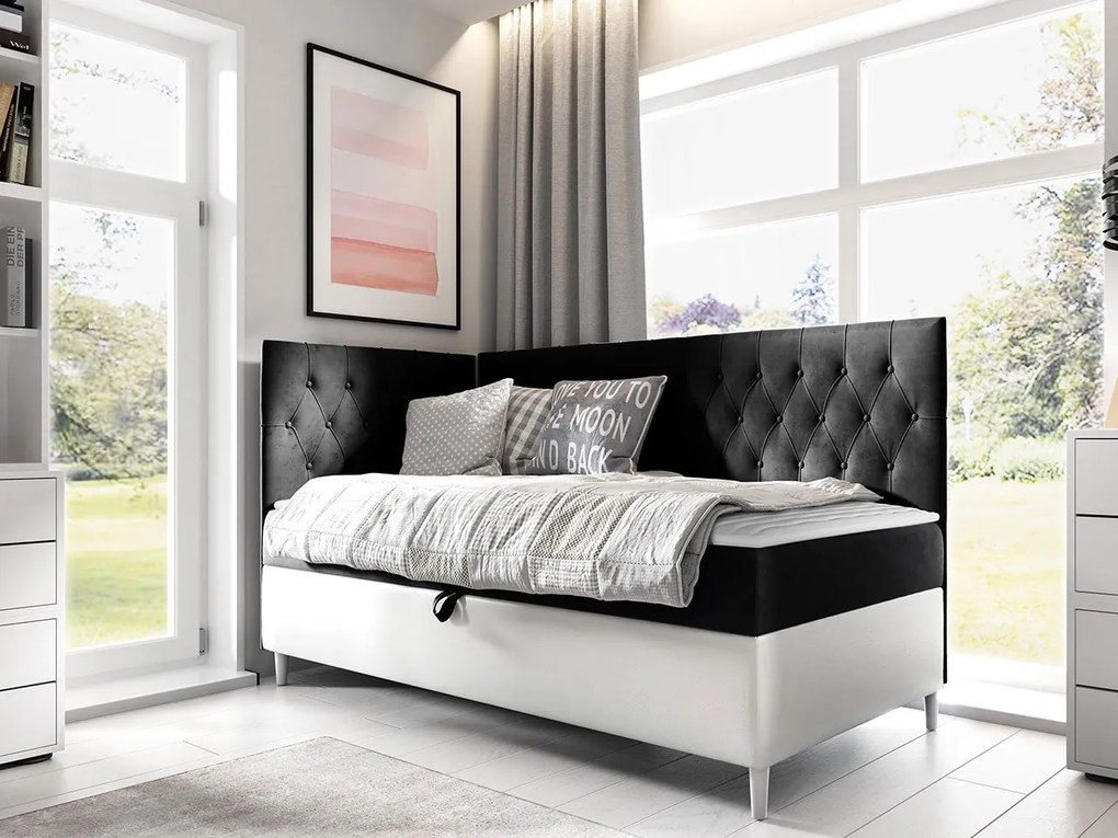 Kontinentálna posteľ Junior Gerdise 3 dodá vašej detskej izbe štýl a jemný šarm. Opierka hlavy je vybavená mäkkou výplňou z vysoko elastickej peny potiahnutej kvalitným čalúnením. Junior Gerdise 3 je kombináciou moderného štýlu s mimoriadnym komfortom a funkčnosťou. Jednolôžko s matracom je dostupné v troch veľkostiach a ponúka aj praktický úložný priestor. Priestor sa ľahko otvára vďaka použitiu špeciálnych pružín.Vysoké čelo umiestnené na šírku aj na dĺžku detskej postieľky je zdobené ozdobným prešívaním. Vyzerajú mimoriadne zaujímavo a dodávajú tomu celému punc elegancie. Moderný charakter zdôrazňujú vysoké nohy, vďaka ktorým je udržiavanie čistoty pod posteľou jednoduché a bezproblémové - čistiaci robot sa pod ňu bez problémov zmestí.Dostupné rozmery:80:hĺbka: 208 cm, šírka: 88 cm, výška: 115 cm,plocha na spanie: 80 x 200 cm,rozmery úložného priestoru: hĺbka: 197 cm, šírka: 77 cm, výška 25 cm,90:hĺbka: 208 cm, šírka: 98 cm, výška: 115 cm,Spacia plocha: 90 x 200 cm,rozmery úložného priestoru: hĺbka: 197 cm, šírka: 87 cm, výška: 25 cm,100:hĺbka: 208 cm, šírka: 108 cm, výška: 115 cm,plocha na spanie: 100 x 200 cm,rozmery úložného priestoru: hĺbka: 197 cm, šírka: 97 cm, výška 25 cmPrevedenie:konštrukcia: 16 mm laminovaná doska + 6 cm hrubé drevo,čelo: 16 mm hrubá doska + T25 vysokoelastická pena,úložný priestor - zdvíhanie vďaka pružinám, vďaka čomu je obsluha veľmi jednoduchá a ľahká,hlavný matrac: bonellové pružiny + T25 vysokoelastická pena,tvrdosť hlavného matraca (stredná vrstva postele): T3 - stredne tvrdý,topper - poťah matraca (poťah Mandula):stredne tvrdý,hrúbka 2,5 cm,prešívaný poťah,topper vyrobený z najkvalitnejších hypoalergénnych materiálov:antibakteriálny a protiplesňový polyesterový úplet 200 gsm,20 mm PU pena: vyznačuje sa vysokým stupňom hustoty, primeranou tvrdosťou a elasticitou, nízkou náchylnosťou na deformáciu, vysokým komfortom používania,netkaná textília z polyesterového vlákna s gramážou 100 g/m2,35 g fleece vyrobený z vysoko kvalitnej netkanej textílie,82 g polyesterové mikrovlákno: priedušné, vysoká absorpcia vlhkosti, antialergické, bariéra proti prachu a roztočom,topper má 4 odolné upevňovacie gumy, ktoré zabraňujú pohybu matraca,lem: olemovaný páskou po obvode,obojstranné - obe strany sú úžitkovou plochou,matrac sa odporúča otočiť každé 2-3 mesiace,prateľný na 30˚Cdrevené nohy, výška 13 cm,posteľ nie je samostatne stojacavýber strany postele určuje, z ktorej strany sa otvára úložný priestorZáruka: 24 mesiacov