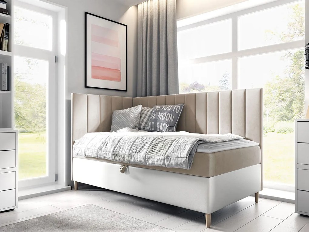 Vybraná varianta:Kontinentálna posteľ Junior Kamire 3, Strana: pravá, Rozmer postele: 90x200, Dostupné poťahy: ekokoža Soft 017 (biela) + Fresh 37