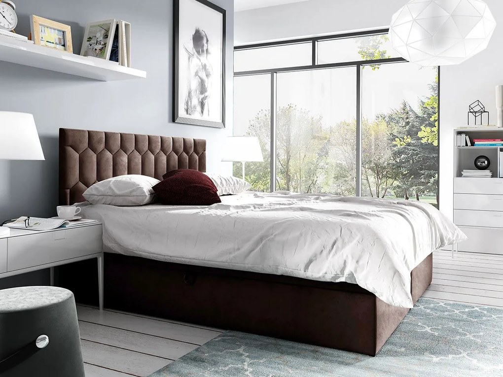 Pohodlný spánok v krásnom prostredí je tou najlepšou možnou voľbou. Pozrite si preto kontinentálnu posteľ Borneo M24 a presvedčte sa, ako elegantne vyzerá. Tento model, ktorý je k dispozícii v niekoľkých rozmeroch, poskytne pohodlný odpočinok dvom osobám.Borneo M24 má mnoho výhod. Počnúc dvoma matracmi: hlavným matracom a topperom, a končiac úložným priestorom na oboch stranách postele. Topper je navyše vybavený 4 robustnými upevňovacími gumami, ktoré zabraňujú jeho pohybu. Najdekoratívnejším prvkom tohto modelu je čelo postele. Príjemná látka s hlbokým prešívaním poskytne pohodlnú oporu a ozdobí vašu spálňu.Dostupné rozmery:140:hĺbka: 208 cm, šírka: 145 cm, výška: 103 cm,plocha na spanie: 140 x 200 cm,rozmery jedného úložného priestoru (posteľ má dva): hĺbka: 197 cm, šírka: 67 cm, výška: 25 cm,160:hĺbka: 208 cm, šírka: 165 cm, výška: 103 cm,plocha na spanie: 160 x 200 cm,rozmery jedného úložného priestoru (posteľ má dva): hĺbka: 197 cm, šírka: 77 cm, výška: 25 cm,180:hĺbka: 208 cm, šírka: 185 cm, výška: 103 cm,plocha na spanie: 180 x 200 cm,rozmery jedného úložného priestoru (posteľ má dva): hĺbka: 197 cm, šírka: 87 cm, výška: 25 cmPrevedenie:kontajner: 16 mm laminovaná doska + 6 cm hrubé drevo,operadlo: 16 mm surová doska + vysoko elastická pena T25,má dva kontajnery na lôžkoviny - posteľ má štandardne dva kontajnery na lôžkoviny na oboch stranách postele, pričom obe časti sa dvíhajú vďaka pružinám, čo veľmi uľahčuje manipuláciu,hlavný matrac: pružiny typu bonell + vysokoelastická pena T25,stupeň tvrdosti hlavného matraca (strednej vrstvy postele): H3 - stredne pevná,na samom vrchu - vrchný matrac (Mandula topper):stredne pevná,hrúbka približne 2,5 cm,prešívaný poťah,topper vyrobený z hypoalergénnych materiálov najvyššej kvality:antibakteriálna a protiplesňová polyesterová pletenina s gramážou 200 g/m²,20 mm PU pena: vyznačuje sa vysokou hustotou, primeranou tvrdosťou a pružnosťou, nízkou náchylnosťou na deformáciu, vysokým komfortom používania,vysoko nadýchané rúno 100 g/m² z polyesterového vlákna,flís s gramážou 35 g/m² vyrobený z vysokokvalitnej netkanej textílie,polyesterové mikrovlákno s gramážou 82 g/m²: priedušné, vysoká absorpcia vlhkosti, antialergické, bariéra proti prachu a roztočom,topper má 4 pevné upevňovacie gumy, ktoré zabraňujú pohybu matraca,lem: po obvode olemovaný páskou,obojstranné - obe strany poskytujú použiteľný povrch,odporúča sa matrac otáčať každé 2-3 mesiace,možno prať pri 30˚Cplastové nožičky,posteľ nie je voľne stojacaZáruka: 24 mesiacov