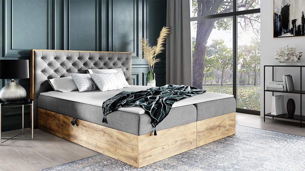 Kontinentálna posteľ Madaris 3, Rozmer postele: 200x200, Dostupné poťahy: dub wotan + Faro 7