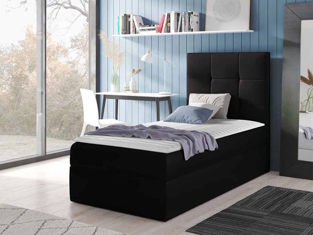Kontinentálna jednolôžková posteľ Kanvar 2, Strana: pravá, Rozmer postele: 90x200, Dostupné poťahy: ekokoža Soft 011 (čierna)