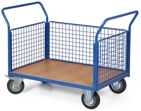 Plošinový vozík - 3 drôtené výplne, 1000x700 mm, nosnosť 400 kg, kolesá 200 mm s čiernou gumou