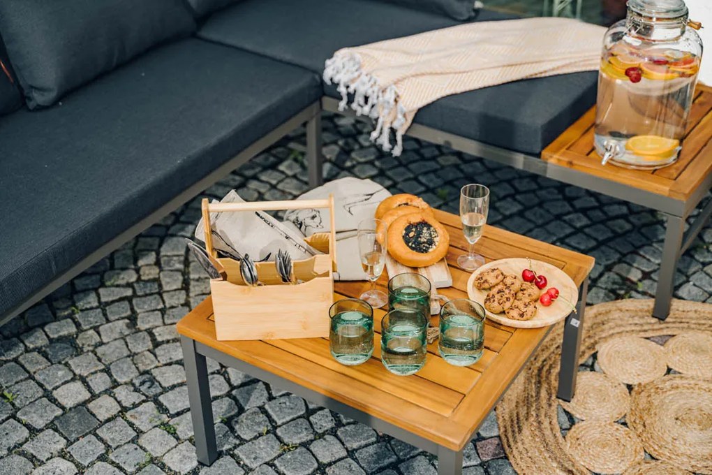 5Five® Košík s 10 hranatými koreničkami, čierne viečka, kov, drevo 22 x 9 x 16 cm