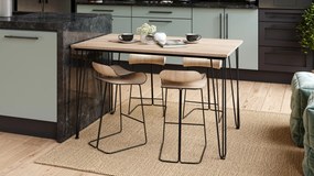 Elegantný stôl, ktorý sa bude dokonale hodiť rovnako do kuchyne, ako aj do jedálne. Doska stola má rozmer 120x70 cm, čo zaručuje dostatok priestoru pre pohodlné stolovanie alebo prácu pri stole. Jedným z hlavných prvkov, ktoré odlišujú tento stôl, sú jeho nohy vyrobené z oceľovej tyče. Tento materiál zaisťuje nielen stabilitu a odolnosť celej konštrukcie, ale taktiež dodáva štýlový charakter. Stôl HAIRPIN sa vďaka svojmu minimalistickému dizajnu skvele hodí do mnohých rôznych interiérov, a to v modernom, loftovom, industriálnom, ako aj klasickom štýle. Je ideálnou voľbou pre ľudí, ktorí ocenia spojenie funkčnosti a estetiky. TECHNICKÉ INFORMÁCIE: šírka: 120 cm hĺbka: 70 cm výška: 75 cm Výrobca: Mazzoni Doska stola je vyrobená z dvojitej, 18 mm hrubej, matnej drevotrieskovej dosky, obojstranne laminovanej. Doplnkovým prvkom sú čierne, práškovo maľované kovové nohy stola. V sade: čitateľný návod krok za krokom, vďaka ktorému je montáž veľmi jednoduchá a zaberie cca. 45-60 min. ĎALŠIE INFORMÁCIE: Atraktívna cena pri zachovaní vysokej kvality nábytku. Na tovar sa vzťahuje 24-mesačná popredajná starostlivosť.