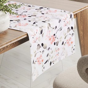 Vybraná varianta:Biante Bavlnený behúň na stôl Sandra SA-288 Eukalyptus s ružovými kvetmi na bielom 20x120 cm