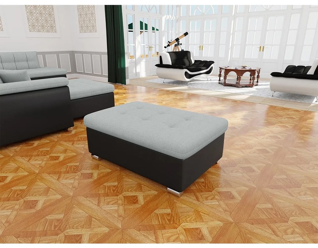 Taburetka na sedenie Tony veľká - keď usporiadame párty a zdá sa nám, že naša sedacia súprava bohužiaľ nie je dostatočne veľká pre všetkých našich pozvaných hostí, je to skvelá príležitosť kúpiť si taburetku! Ideálne sa hodí ako núdzové sedenie pre hostí, ktorí sa určite budú cítiť pohodlne pri sedení na tejto taburetke. Pri výrobe taburetky sa kladie dôraz na každý detail. Prešívané sedenie poskytuje pohodlie, keď sa rozhodneme si na chvíľu na ňu posadiť. Veľkou výhodou tejto taburetky na sedenie je možnosť výberu rôznych farebných prevedení, ktoré nakoniec potešia nielen našich hostí ale pridávajú kúzlo aj do nášho interiéru. Rozmery: dĺžka: 96 cm šírka: 70 cm výška 41 cm Prevedenie: drevený rám + drevotrieska vysokoelastická pena T 2844 neotvárateľný taburet Záručná doba: 24 mesiacov