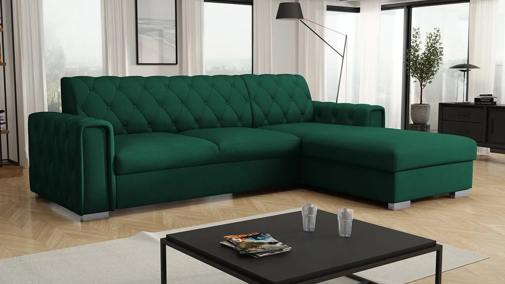 Tmavozelená rozkladacia rohová pohovka ZENA, obojstranná