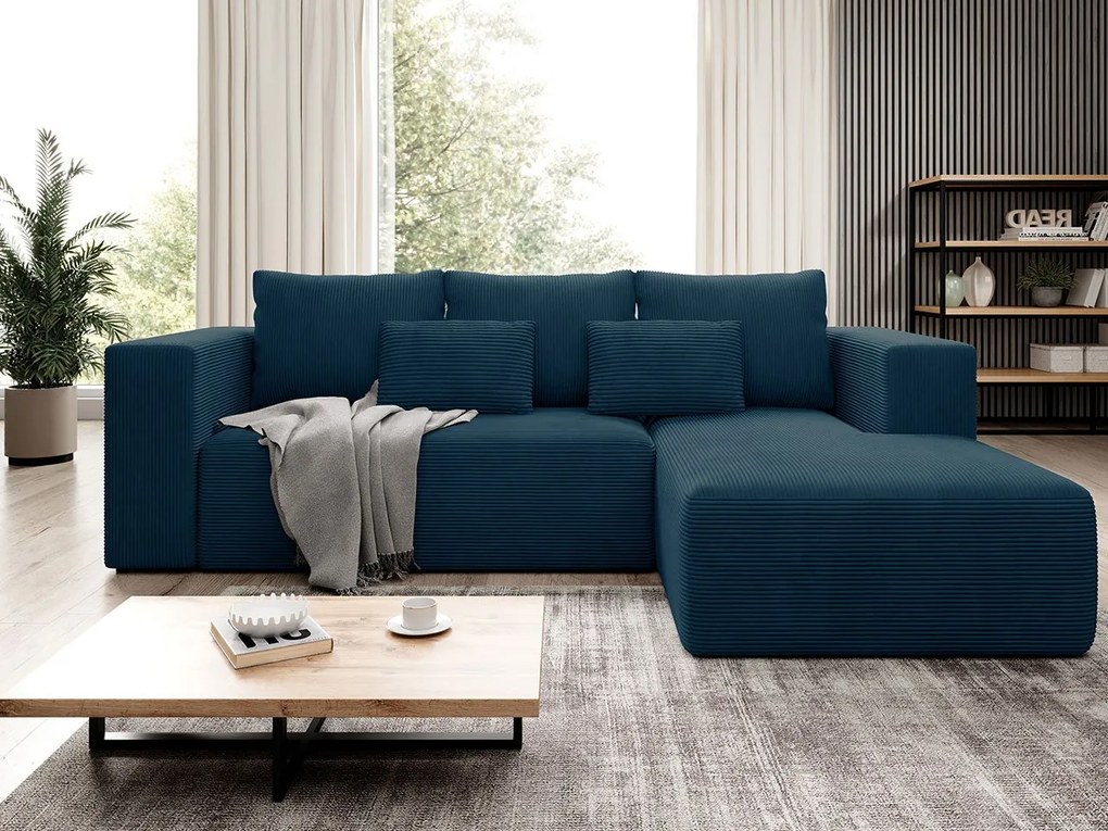 Tmavomodrá rozkladacia rohová pohovka ZENOVA 220x140 cm, obojstranná